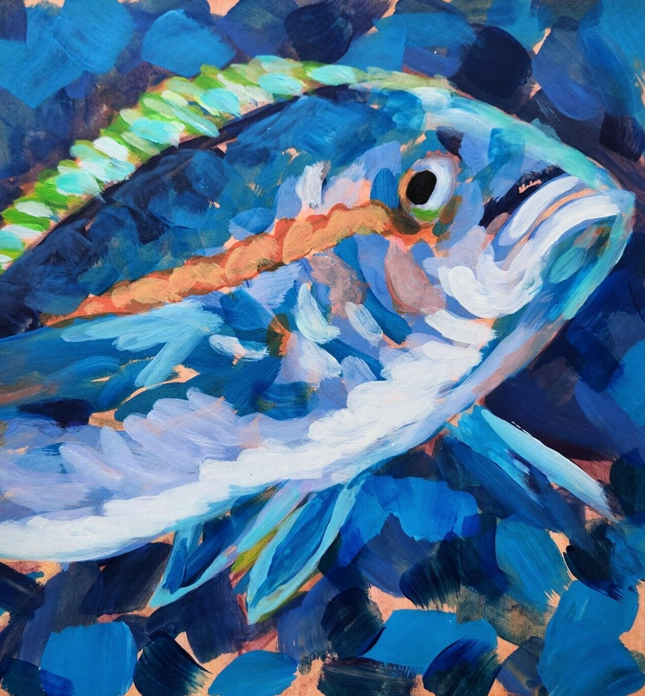 Fish Acrylic Original Painting 9x12 Handmade Paper Ebay
