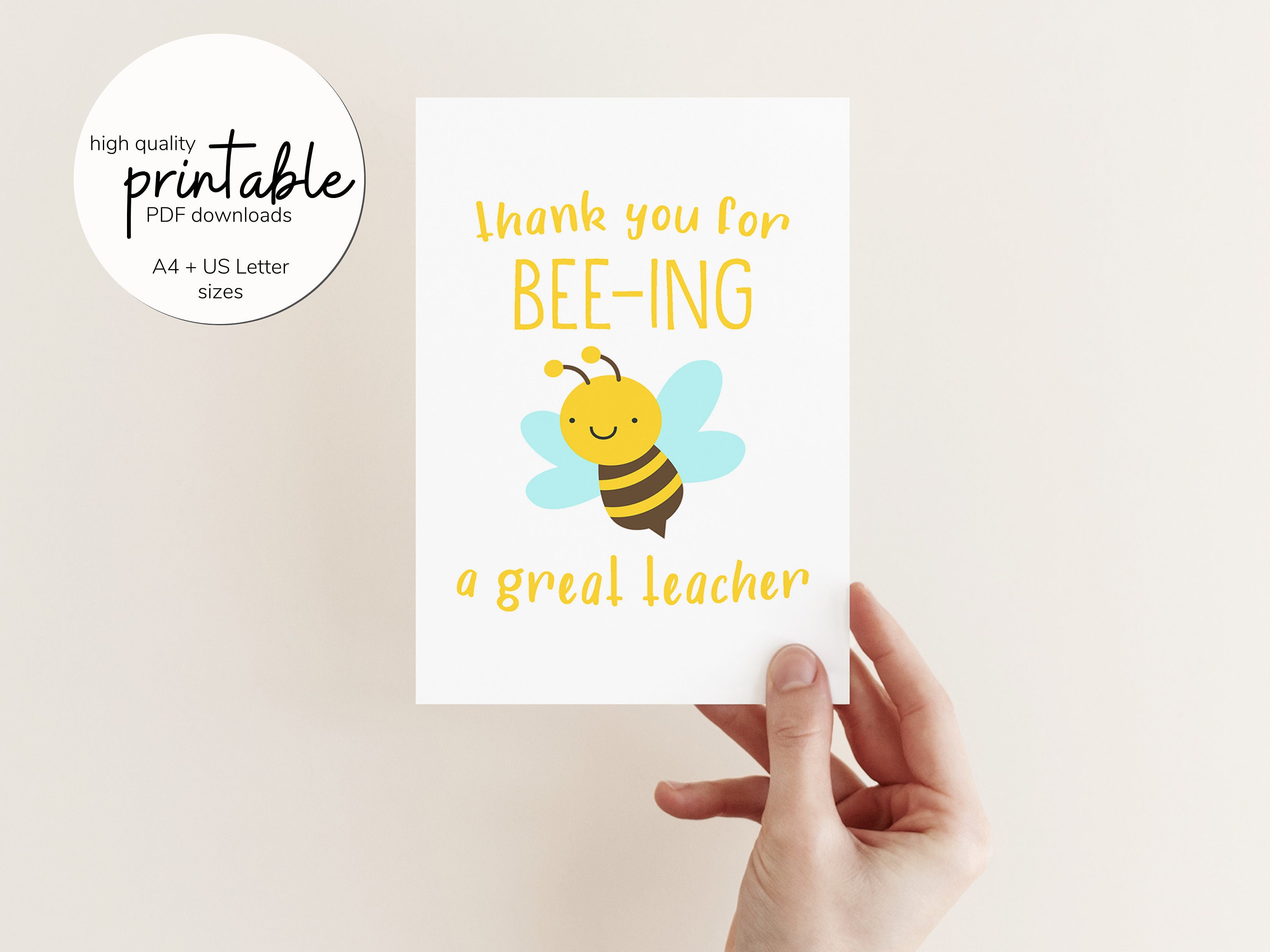 Thank You For Beeing A Great Teacher Card Printable Teacher Etsy